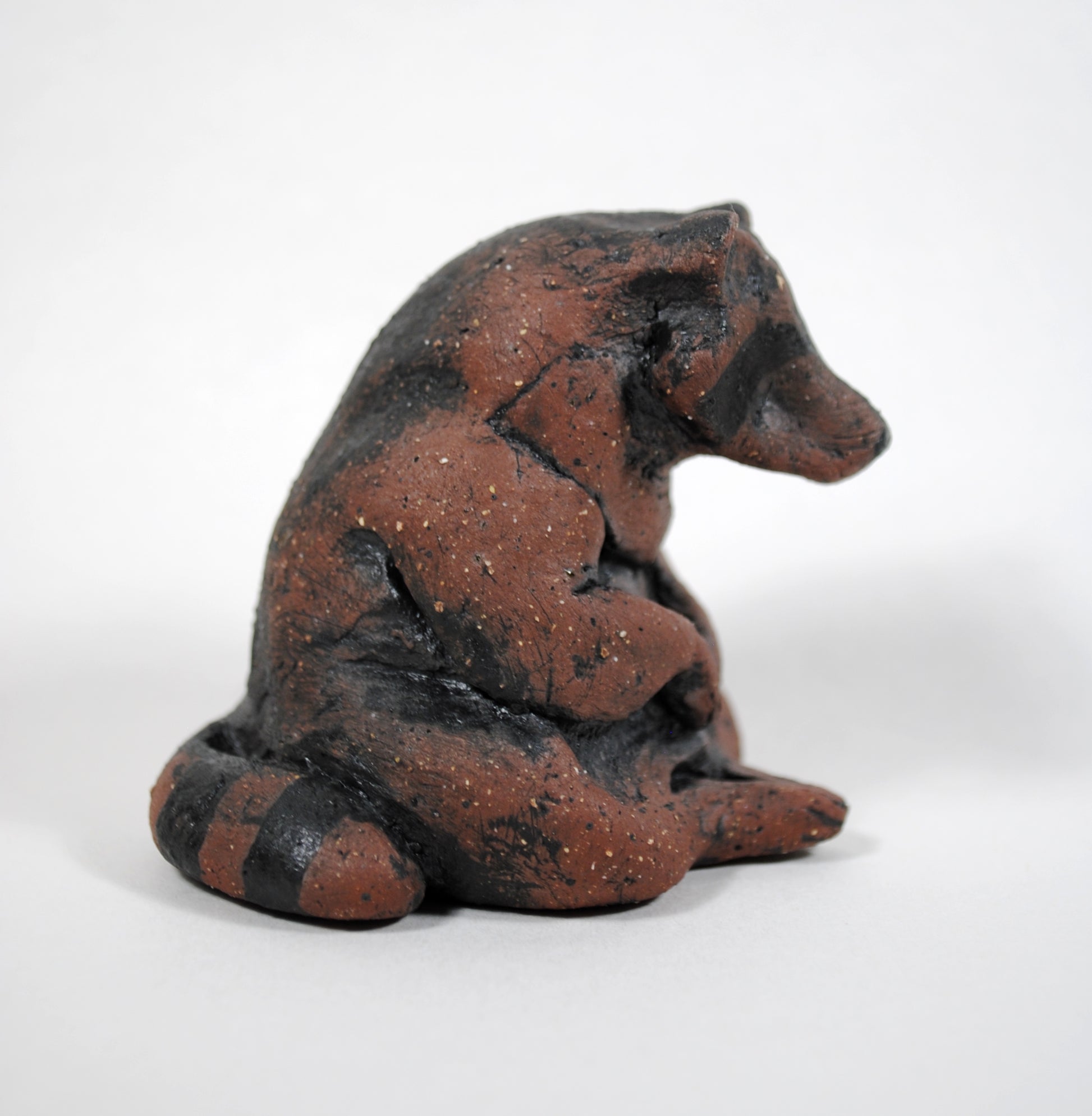 This little raccoon is ready to keep you company. Hand sculpted from red earthenware clay and fired to cone 6 with black underglaze accents. Would work great as an altar piece, paperweight, or just a little art! The raw clay texture is smooth yet gritty like real stone.